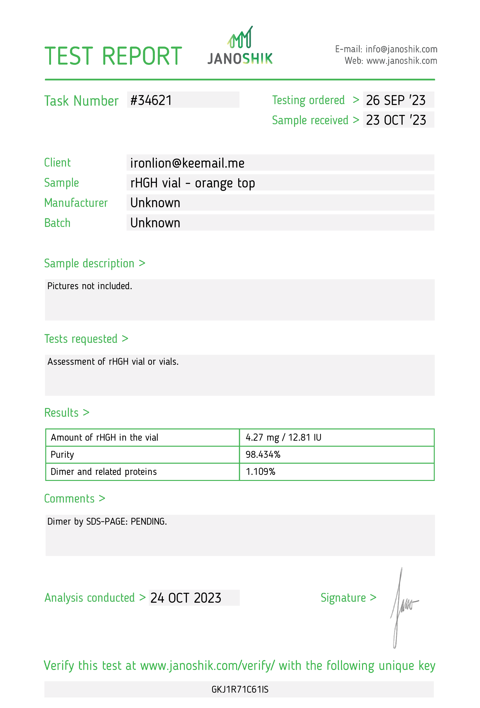 orange top puretropin gh HPLC testing 2023